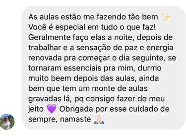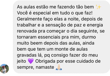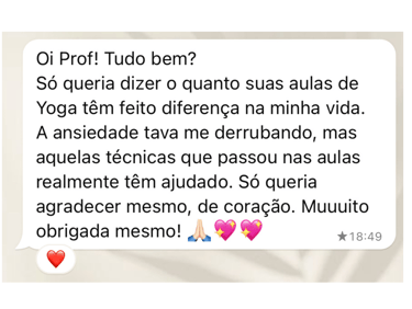 Aulas guiadas passo a passo para reduzir ansiedade, dormir melhor e fortalecer o corpo, com linguagem simples e meu acompanhamento, pra você sentir alívio já nas primeiras práticas.