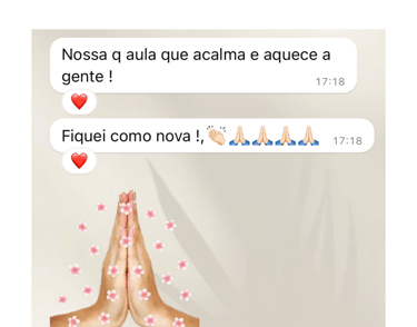 Aulas curtas de até 15 minutos, perfeitas para dias corridos ou para encaixar entre compromissos. Mesmo com pouco tempo, você consegue se reconectar, aliviar tensões e renovar a energia.