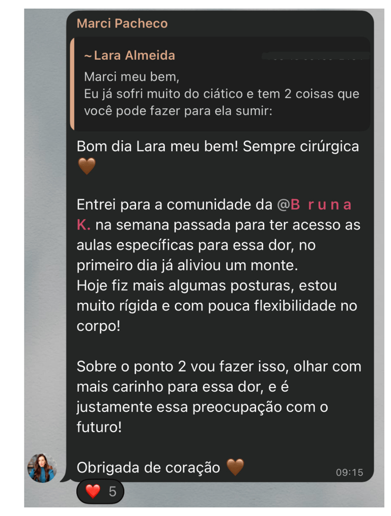 Eu te guio no caminho, e a comunidade caminha junto pra manter sua motivação até você se sentir bem de novo: no corpo e na mente.