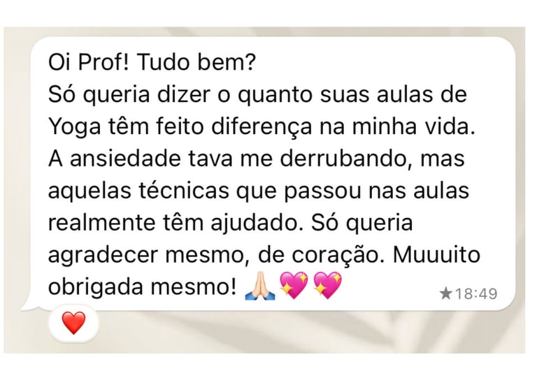 Quando corpo e mente se equilibram, você fica mais leve, focada e presente, e isso muda não só o seu dia, mas também quem está à sua volta.